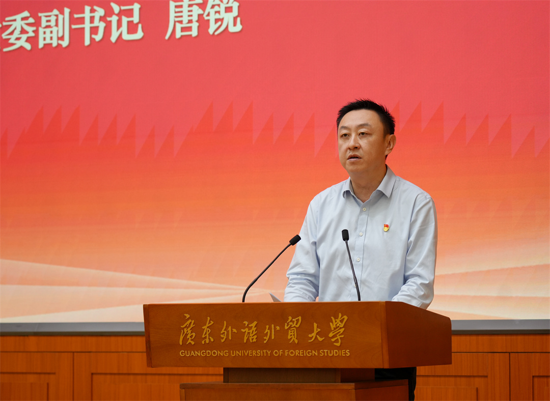唐锐在讲话中指出,要以高质量党建赋能学校事业“冲一流”工作为总牵引,推动基层党建各项工作提质增效;抓好两条主线,推动全年党建工作重点任务落实;强化三大领域工作,增强基层党组织的政治功能和组织功能;深入推进“双百行动”,确保“头号工程”出亮点、出实绩、见成效,为全面落实省委“1310”具体部署和广东“走在前列”总目标作出广外新贡献。
