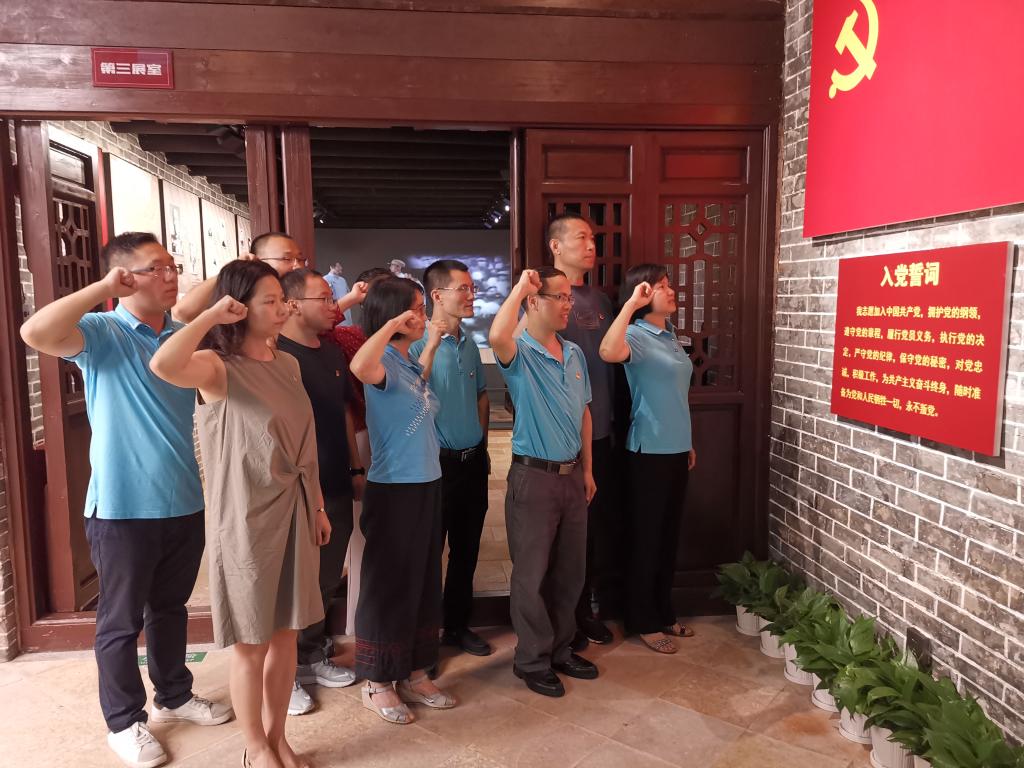 活动中,两个支部10名党员一起参观了“华南明灯——杨匏安旧居革命历史陈列”。 杨匏安烈士是华南地区传播马克思主义第一人、中共监察工作先驱、我们中华民族最杰出的优秀历史人物的典范代表,党员同志们跟随着讲解,仿佛又回到了战火纷飞的革命年代,杨匏安等革命烈士不惧牺牲、坚守信仰的精神感召着我们不断奋进。随后,全体党员面向党旗庄严宣誓,重温入党誓词。