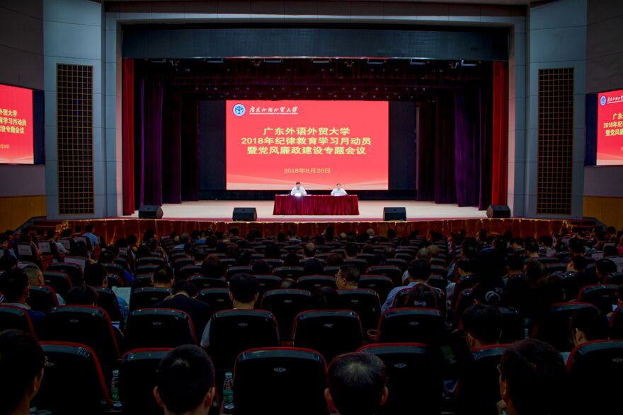 9月20日下午,我校在北校区云山会堂举行2018年纪律教育学习月动员暨党风廉政建设专题会议,校党委书记隋广军代表学校党委对纪律教育学习月活动进行动员,并作题为“提高政治站位,强化责任担当,为教育事业发展持续营造风清气正的政治生态”的专题辅导报告。校党委副书记李云明主持会议并对纪律教育学习月活动进行具体布置。校领导,校党委委员,校纪委委员,校务委员,基层党委、党总支部、直属党支部书记,正、副处职(级)干部,正科职(级)干部,正、副高级专业技术职务人员等近千人参加了会议。