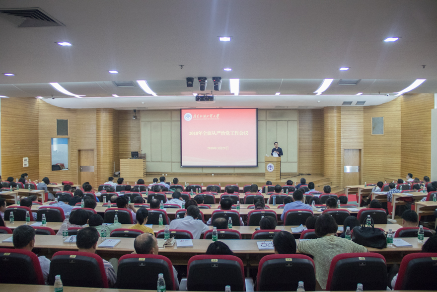 3月29日下午,为全面贯彻党的十九大和十九届二中、三中全会精神,全面落实党中央、教育部、广东省相关工作部署,深入推进全面从严治党,我校在北校区图书馆负一层报告厅举行2018年全面从严治党工作会议。校党委书记、校长隋广军作题为“坚定不移,强化担当,推动全面从严治党向纵深发展”的报告,对2018年从严治党工作提出五方面的要求。校领导、校党委委员、校纪委委员,正、副处职级干部,二级党组织纪检委员及特邀监察员出席会议。